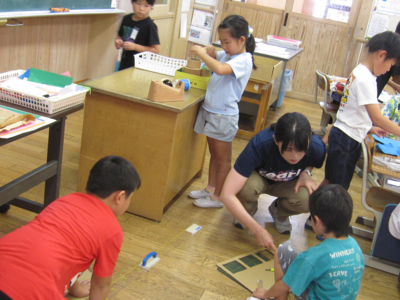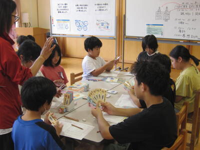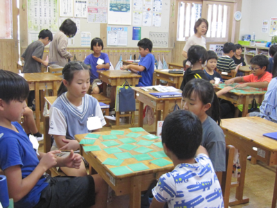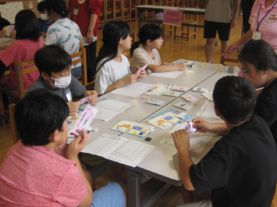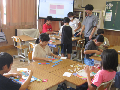 出来上がった互いの作品で実際にパズルやゲームをしました。