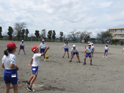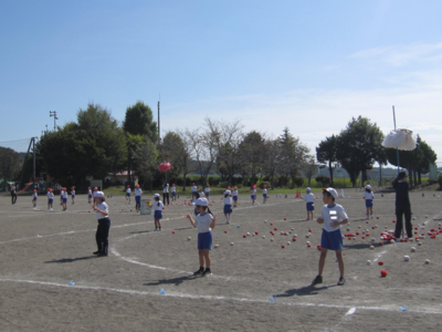 ◆1・2年生・・・合同体育「スポーツおにごっこ」