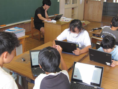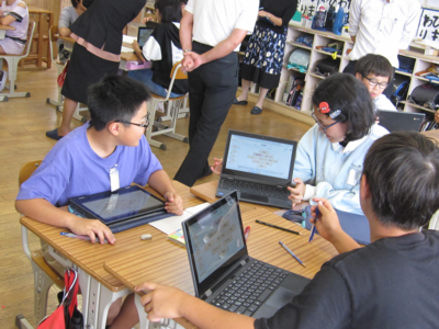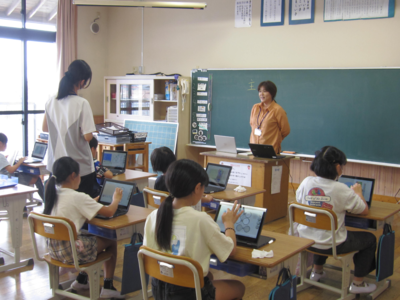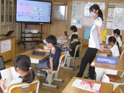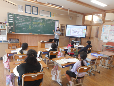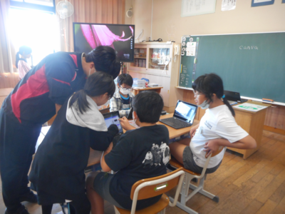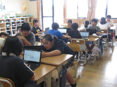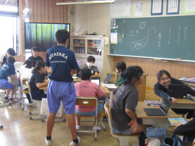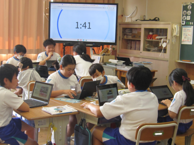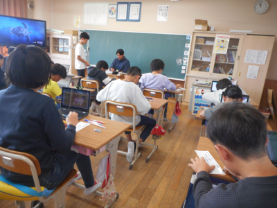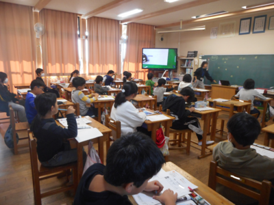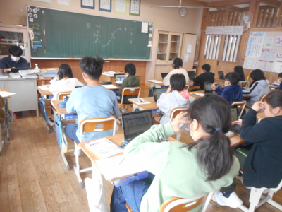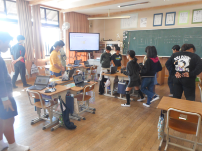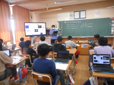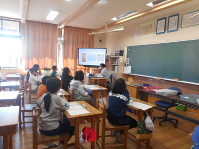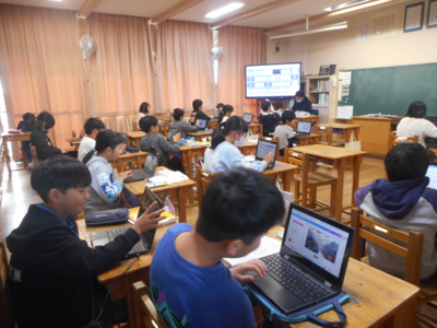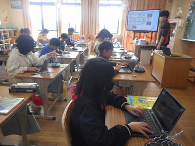 6年生がICTを使った授業を実施し、本校の教員や近隣の高校教員が参観しました。