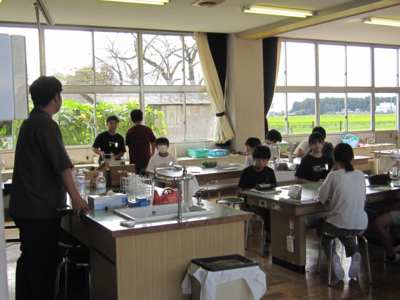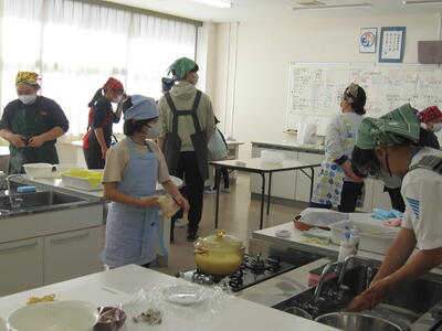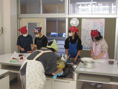 みそ汁は煮干しでだしをとり、手際よく、実習を進めていました。