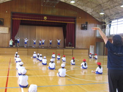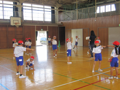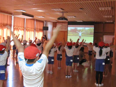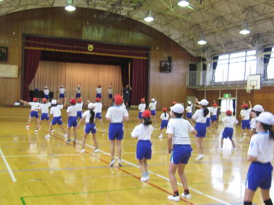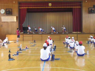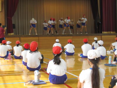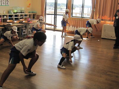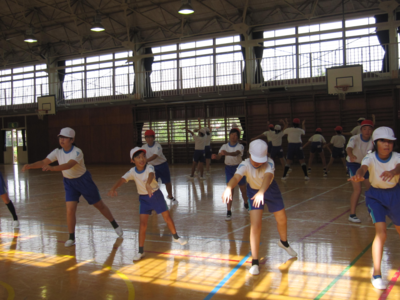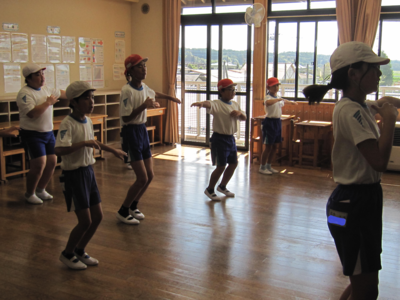 下学年はダンス練習をしました。まだ3回ですが、なかなか上手に踊れています。