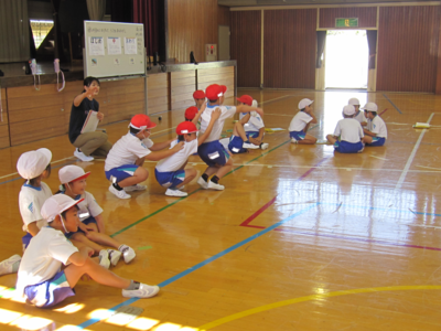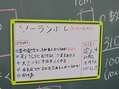 下学年は運動会の基本的な姿勢とラジオ体操、ダンス「青と夏」を練習しました。