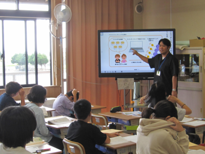 6年生教室では、中学校生活について作成したスライドを使って説明してくれました。