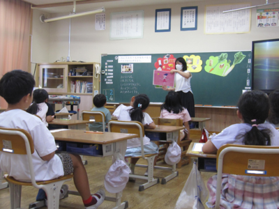 1年生が、栄養職員による「食に関する指導」を行いました。