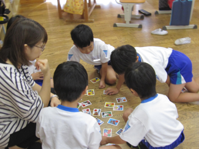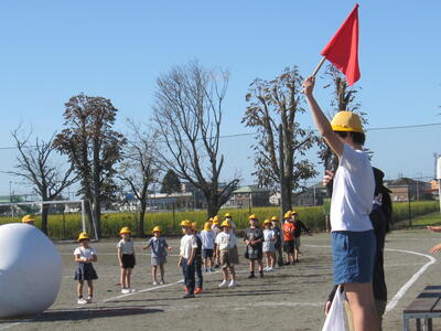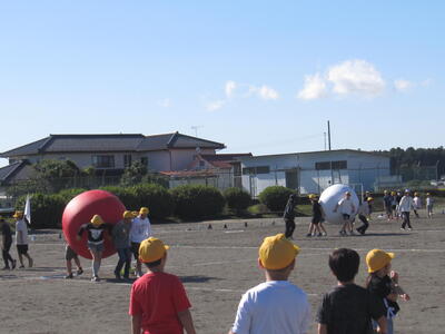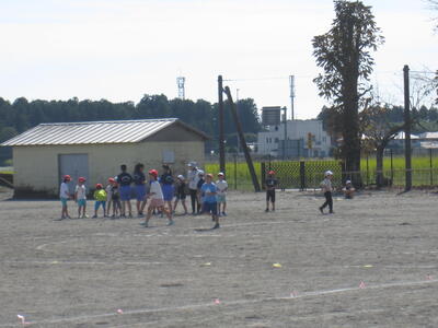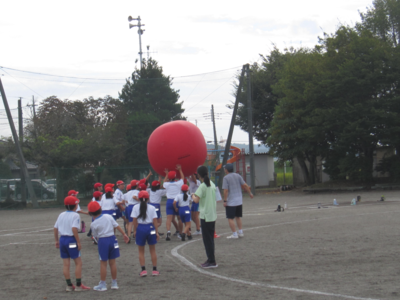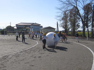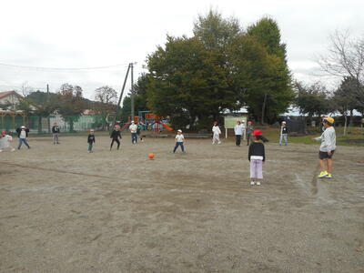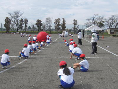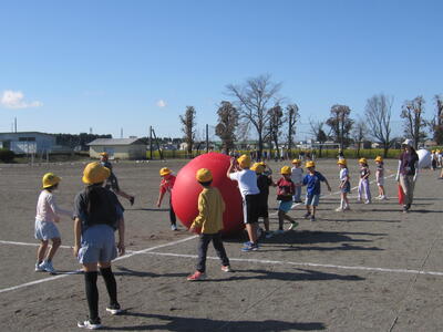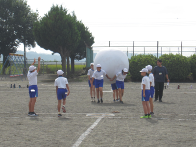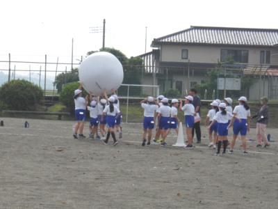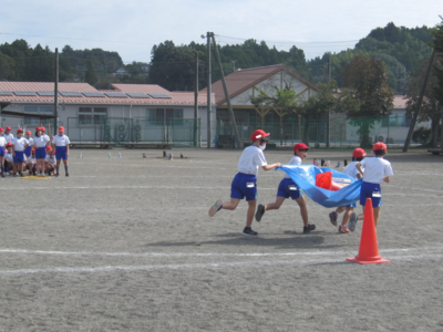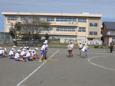 3年生と合同で3つのチームに分かれ元気いっぱいゲームをしました。