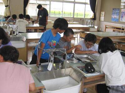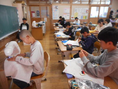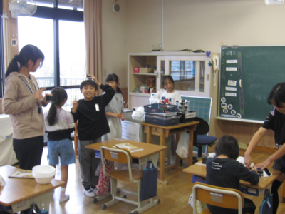 家庭科の学習でごはんとみそ汁を作りました。2名のボランティアさんも来校し、支援してくださいました。