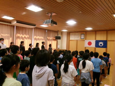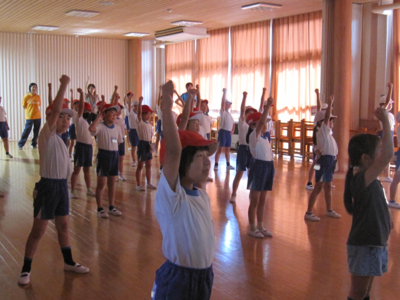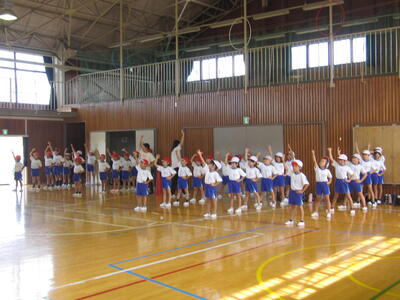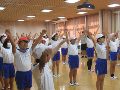 ラジオ体操とソーラン節を練習しました。ソーラン節は4年生から6年生の6つの縦割り班で行います。