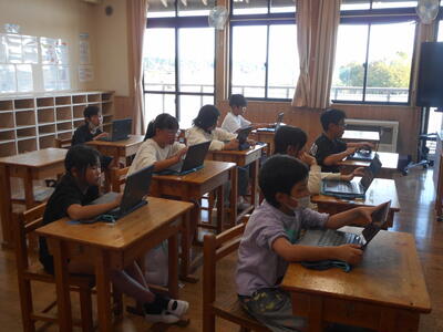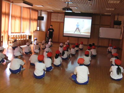 運動会の練習が来週から本格的に始まります。紅白が決まり、各学級では音楽の時間に「運動会の歌」の練習が始まっています。6年生は、リーダーとなって4・5年生に教える「ソーラン」の踊り方を動画を見ながら確認していました。