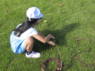 サツマイモのつるでなわとびをしたり、リース作りをしたりしました。