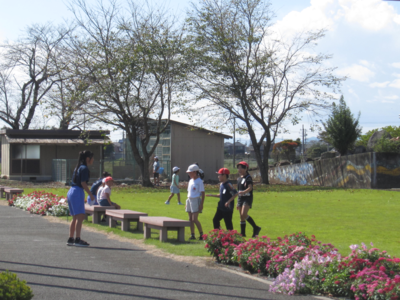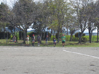 5・6年生が持久走記録会の試走を行いました。まず男子、それから女子の順で1000Mを周回しました。男子が走っているときは女子が、女子が走っているときには男子が、大きな声で温かな応援を送っていました。