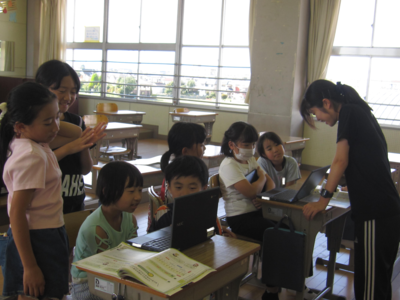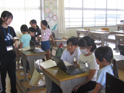 休み時間や昼休みには、マイチャレンジで来ている7名の中学生達が一緒に遊んでくれました。