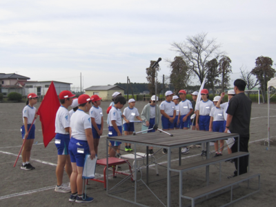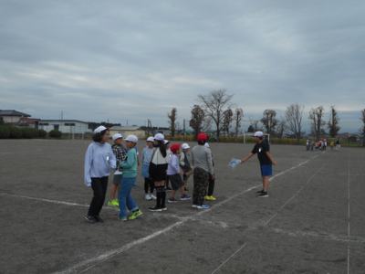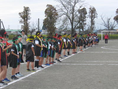 町民広場に町内の6年生が集い、1000Mの駅伝、800Mのチャレンジ走を行いました。