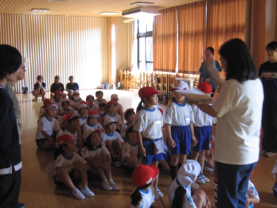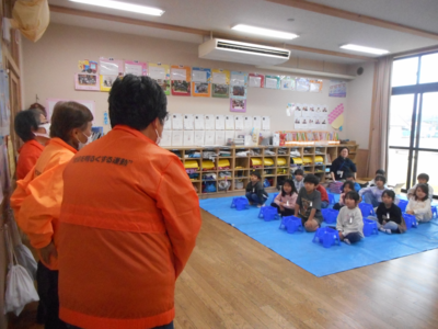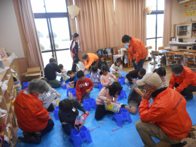 今日は3名の方が来てくださいました。子供達は「おはようございます」とさわやかなあいさつをし、あいさつシールをもらいました。
