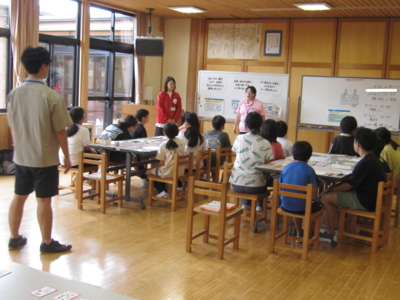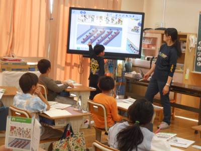 紙芝居を見たり、ワークシートで考えたりしながら、元気に生活するには、いろいろな食べ物をバランスよく食べることが大切なことを学びました。