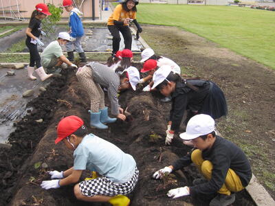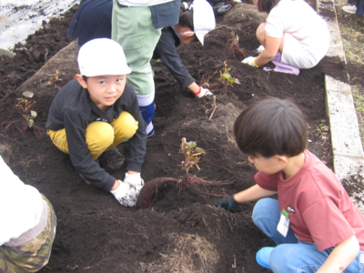 球根の植えつけ方を教えていただいたり、チューリップの歌を一緒に歌ったりしました。春になって、どんな色のチューリップの花が咲くのか今から楽しみです。