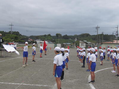 6年生を中心とした係の児童の運動会練習も始まりました。開閉会式や国旗掲揚等、真剣な態度で練習に臨んでいました。