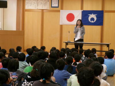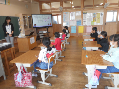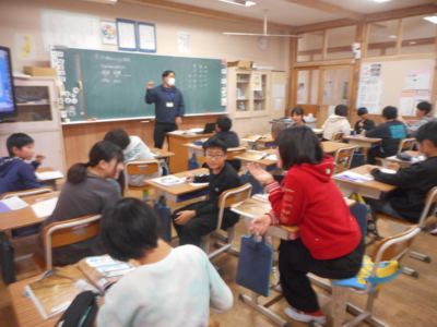4月には中学生になる6年生、興味深く話を聞いていました。中学生の皆さんは今回の体験をこれからの生活に生かしてください。
