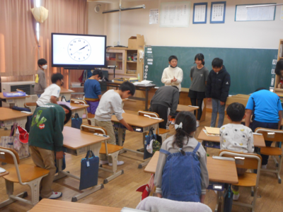 本校では今年度、水曜日の一斉下校時に当番学年の子供達が、各教室に出向いて「さよなら」のあいさつをする活動を実施しています。今日は6年生が各学年の教室に行き、あいさつ運動を行いました。