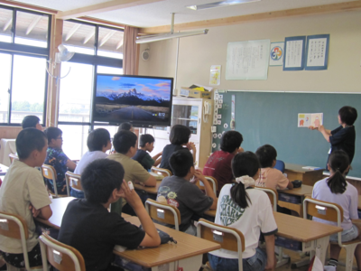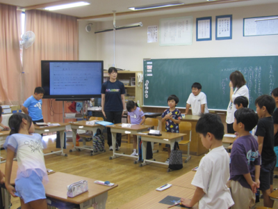 4年生が総合的な学習で町内の高齢者福祉施設に出かけました。施設の清掃をしたり、利用者と一緒にゲームをして遊んだりして、交流しました。