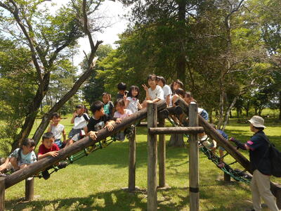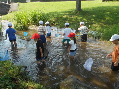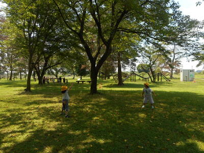 ボール遊びやおにごっこ、遊具遊びをする子、せみの抜け殻を見つける子等、好きな遊びを楽しんでいました。