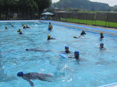 今日は着衣水泳を実施し、万が一、水難事故にあったときの水中での動き方など、対処法を体験しました。