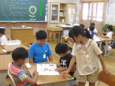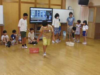教室には子供達の嬉しそうな歓声が響いていましたが、集中力を要するゲームではじっと静かに見守って応援していました。