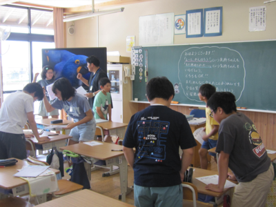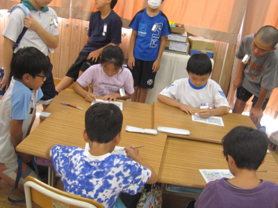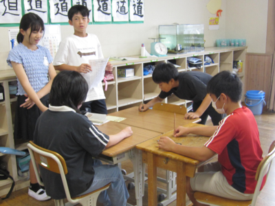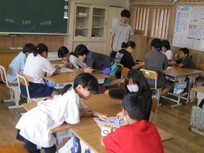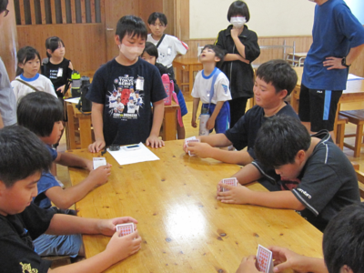 6年生は班に分かれ、ゲーム進めます。5年生は6年生の説明を受けながら実際にゲームをし、本番に向けた調整をしました。
