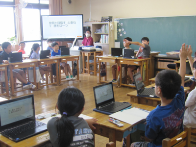 来月の運動会に向けて、スローガンを話し合う学級もありました。