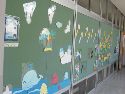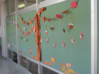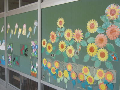 図書室の掲示用の飾りも図書ボランティアさんにご協力いただいています。