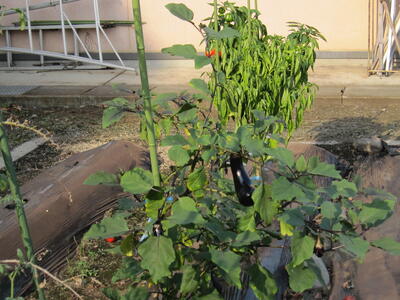 あすなろ学級の秋ナス、ピーマンもまだまだ実っています。