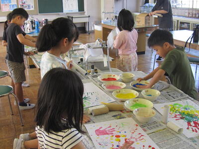 いろいろな材料を使い、色や押し方を工夫して楽しく作品を作りました。