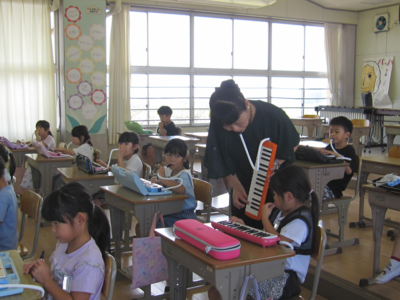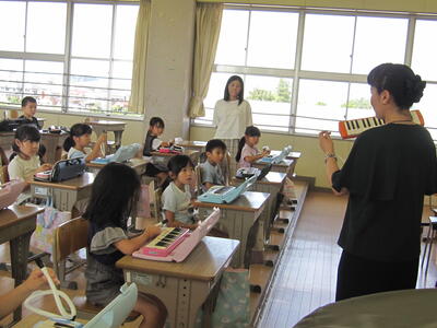 1年生が外部講師による鍵盤ハーモニカ講習を行いました。