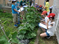 4年生児童が、ひょうたんの生長の様子を観察しました。