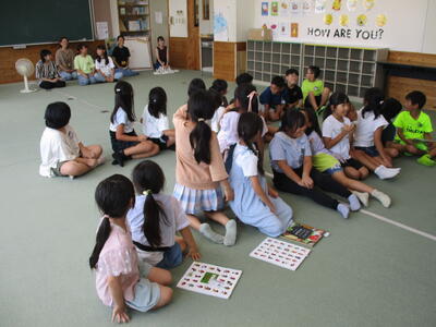 wake up time、breakfast time、study time などの表現に慣れ親しむことができました。