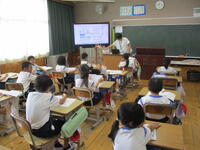 2年生児童の1年生への気遣いや優しさが随所に見られ、1年生児童は校内の各部屋を楽しく探検できたようです。
