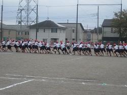ました。綱を引き合うところに、上学年の子どもたちが応援に