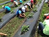 前回、サツマイモの苗を植えた農園の草むしりや水やりを行いました。