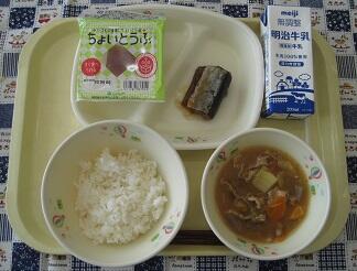 ごはん、牛乳、さんまかぼすレモン煮、ひややっこ、とんじる