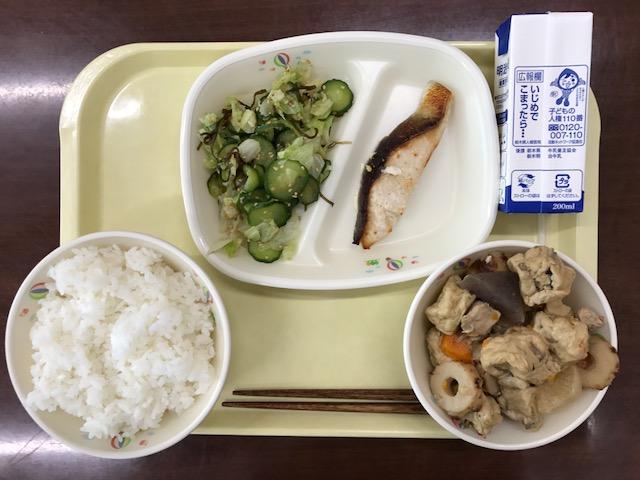 ★ ごはん、牛乳、メバル唐揚げ、切り干し大根炒め、秋味覚汁 【606Kcal】