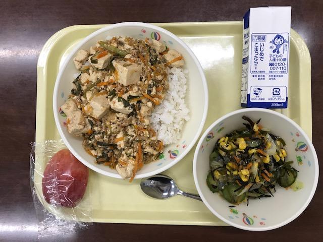 ★ マーボーどん、牛乳、こんにゃく海藻サラダ、りんご 【608Kcal】