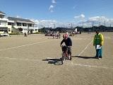 実際に校庭に交差点などを描き、自転車の安全な乗り方を学びました。
