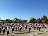 運動会に向けて全校運動で整列の仕方やラジオ体操を