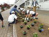 グリーンタイムでは、花壇にパンジーやビオラを植えました。
