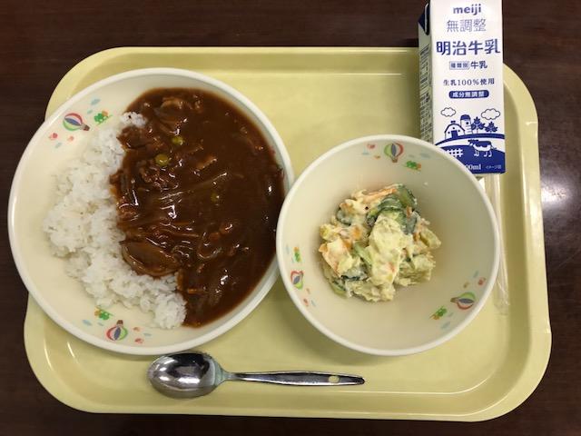 ★ 麦ごはん、牛乳、ハッシュドポーク、さつまいものサラダ 【638Kcal】