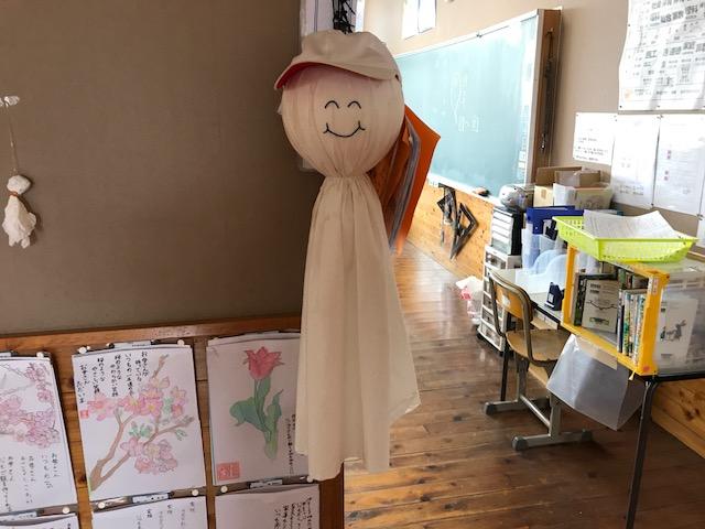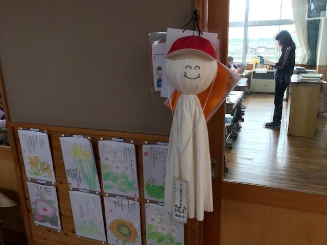 ★ 教室の入口には、てるてる坊主がつるしてあります。明日天気になあれ!!