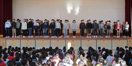 子どもたちは、静かに体育館に入って、整列も上手でした。そして、