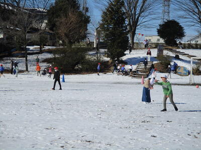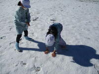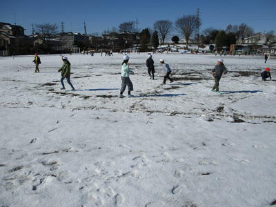 休み時間には、校庭に積もりシャーベット状になった雪で遊ぶ子どもたちの姿が、あちらこちらで見られました。雪の冷たさで手を真っ赤にしながらも、うれしそうな表情で遊ぶ子どもたちは元気そのものです。まるで雪の冷たさを楽しんでいるかのようでした。