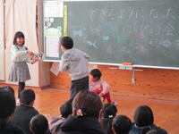 そこで、今日は谷口先生とのお別れ会を子どもたちが企画しました。いす取りゲームやなんでもバスケットなどのゲームをしたり、子どもたちからメッセージ集を贈ったりしながら、楽しいひとときを過ごすことができました。会の最後には、子どもたち一人一人が思い思いに折った折り紙を谷口先生にお渡ししました。心温まるお別れ会になりました。