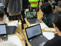 タブレットを持ち帰ってドリル学習等に利用するため、1年生児童がタブレットでのドリルソフトの使い方について学習しました。パスワード入力からのタブレット起動から、漢字ドリルや計算ドリルなどのソフト利用の手順を確認しました。機器トラブルや操作ミス等により時折困る場面がありましたが、多くの児童が操作に慣れてドリル問題を解くことができました。
