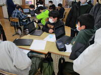 なかよしタイムでは、1~5年生の児童が手話を交えた歌の練習に励みました。曲は「ビリーブ」です。5年生が中心となって手話付きの動画を事前に撮影し、その動画を視聴しながらなかよし班ごとに集まって練習しました。歌は6年生を送る会で披露されます。